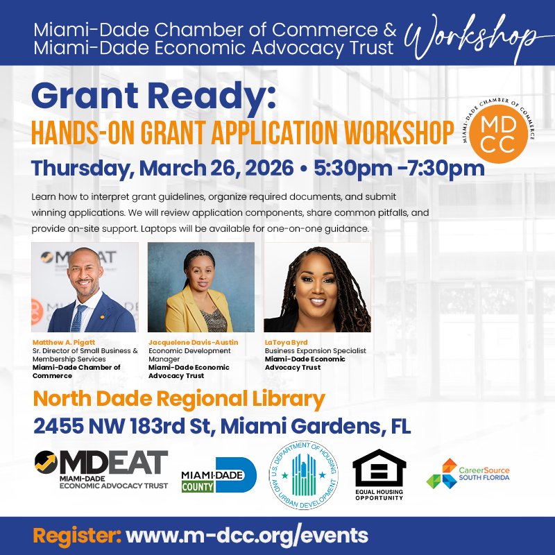 With the rapid pace of things changing for Small Businesses, we invite you to join the Miami-Dade Chamber of Commerce for your chance to meet other business owners, share resources, and talk strategy.